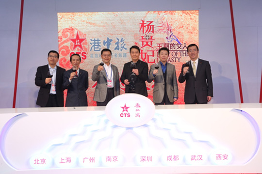 上海國際旅交會期間,集團與春秋鴻文化投資股份有限公司聯(lián)手推廣電影《王朝的女人·楊貴妃》。集團宮曉冰副總經理和春秋鴻公司領導及主演黎明出席啟動儀式。