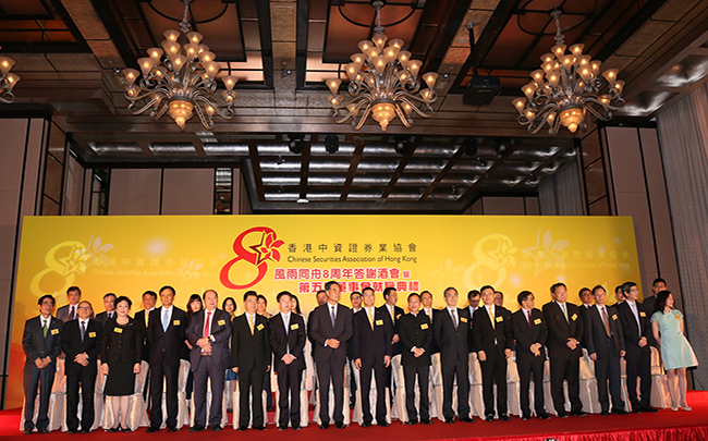 5月12日中午,香港中資證券業(yè)協(xié)會在港舉行「香港中資證券業(yè)協(xié)會風雨同舟八周年暨第五屆董事會就職典禮」。集團總經(jīng)理、港中投董事局主席姜巖受邀擔任主禮嘉賓,與香港特別行政區(qū)行政長官梁振英、立法會主席曾鈺成、中聯(lián)辦經(jīng)濟部部長孫湘一等300多位特區(qū)政府官員、立法會議員及證券業(yè)內(nèi)知名人士一同出席。期間,姜總還與港交所行政總裁李小加及相關(guān)業(yè)界人士等進行了業(yè)務(wù)交流。