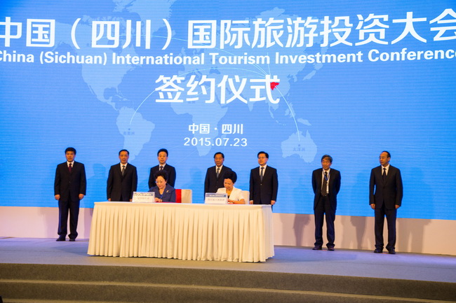 7月23日,集團(tuán)姜巖總經(jīng)理、鄭江副總會(huì)計(jì)師、戰(zhàn)發(fā)部陳賢君總經(jīng)理、資產(chǎn)板塊田群總經(jīng)理、景區(qū)板塊曲濤常務(wù)副總經(jīng)理等一行參加了在成都舉辦的“中國(guó)(四川)國(guó)際旅游投資大會(huì)”。會(huì)上,姜巖總經(jīng)理代表集團(tuán)與四川省政府簽訂了《促進(jìn)中國(guó)港中旅集團(tuán)與四川省政府關(guān)于旅游業(yè)發(fā)展戰(zhàn)略合作協(xié)定》。四川省委書(shū)記王東明、省長(zhǎng)魏宏、國(guó)家旅游局局長(zhǎng)李金早、中國(guó)房地產(chǎn)業(yè)協(xié)會(huì)會(huì)長(zhǎng)劉志鋒等領(lǐng)導(dǎo)出席會(huì)議。中國(guó)國(guó)旅集團(tuán)董事長(zhǎng)兼總經(jīng)理王為民、華僑城集團(tuán)公司副總裁劉平春、大連萬(wàn)達(dá)集團(tuán)董事長(zhǎng)王健林、新希望集團(tuán)董事長(zhǎng)劉永好等120多家境內(nèi)外知名旅游企業(yè)負(fù)責(zé)人參加了會(huì)議。