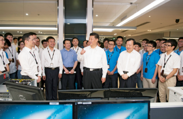 2015年5月26日下午,習(xí)近平總書(shū)記蒞臨位于杭州的中電海康控股公司??低暱疾煺{(diào)研。(圖片來(lái)源:新華社)